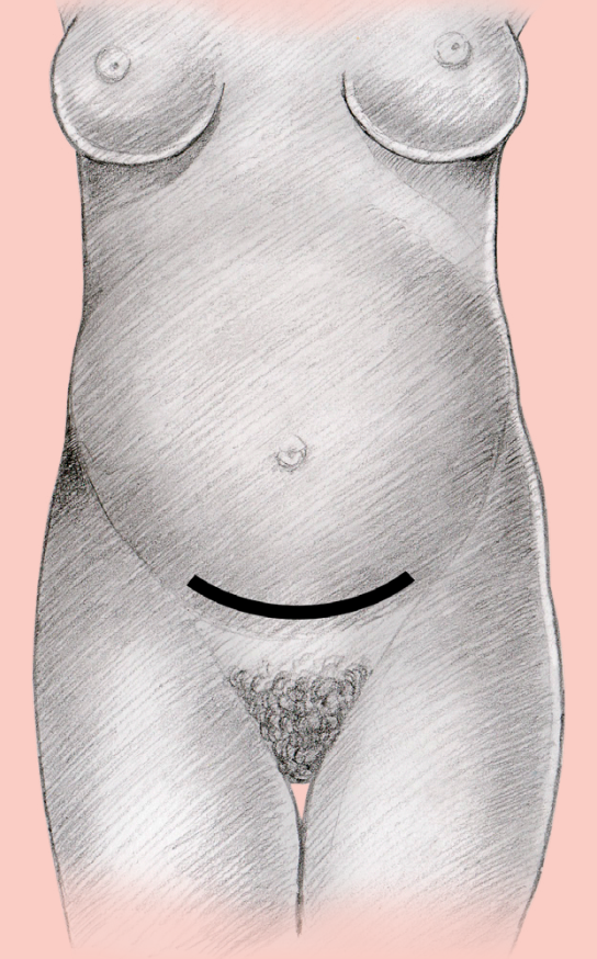 Bikini cut. Irisan ini dalam istilah medis disebut irisan pfannenstiel, irisan yang dilakukan pada perut bagian bawah serendah garis perut bawah Anda. Irisan ini dilakukan semata-mata mempertimbangkan segi kosmetik. Terkenal dengan nama bikini cut, karena irisan ini sangat rendah di bawah garis bikini Anda. Meskipun Anda mengenakan bikini, irisan tersebut tetap tersembunyi dan tidak terlihat bekas operasinya.